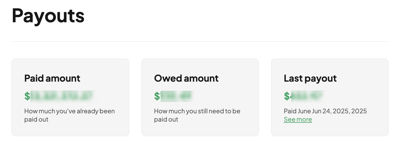 These thresholds ensure that payouts are processed efficiently and in accordance with our payment processor’s guidelines. For a complete breakdown of how payouts work, please review our Payout Terms & Conditions.