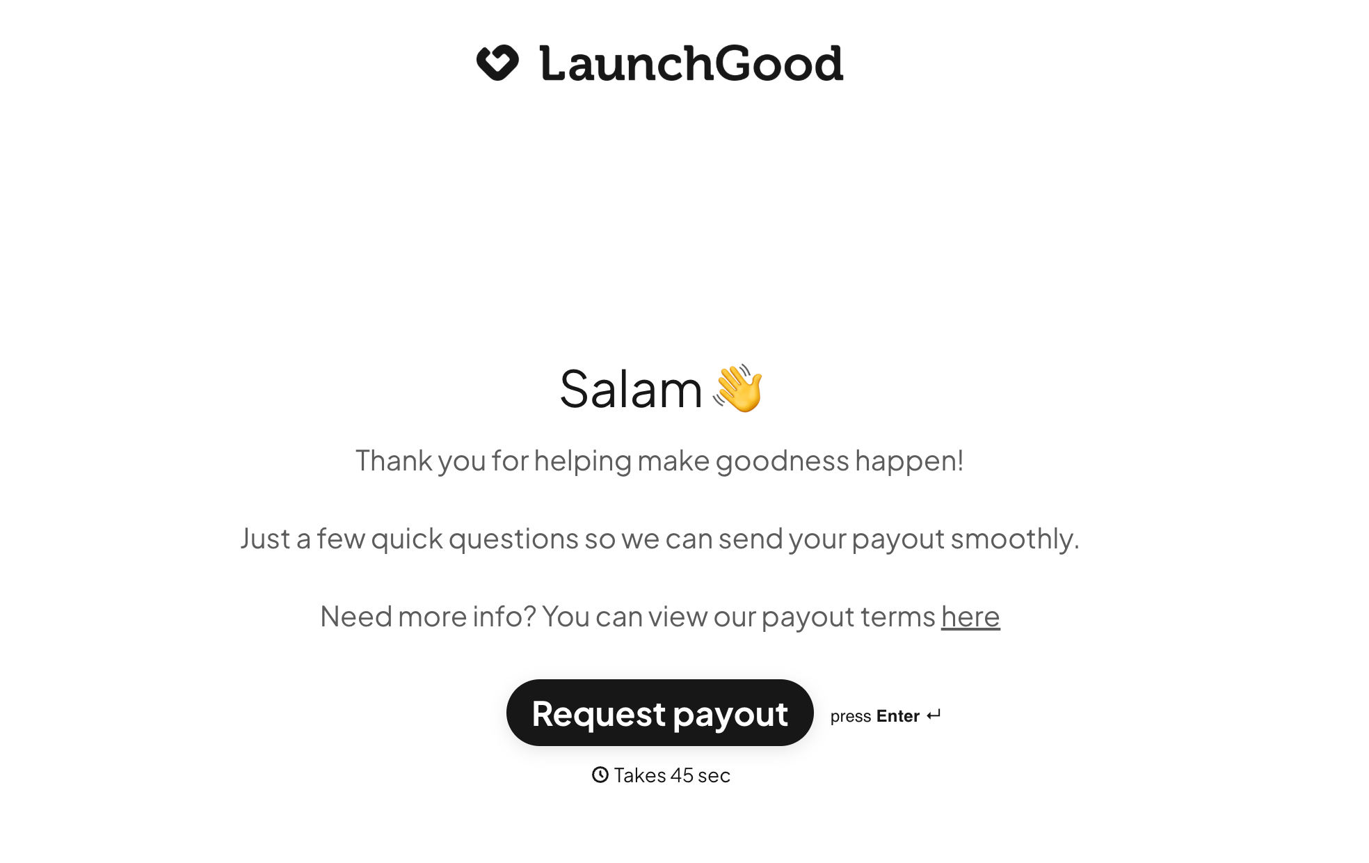 LaunchGood makes tracking and receiving your payout easy. Whether you’re fundraising for a personal cause or on behalf of an organization, here’s everything you need to know to make sure your funds reach you smoothly and on time, inshaAllah.