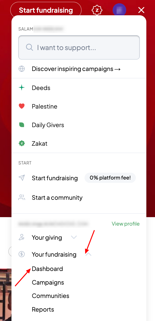 - After logging in, go to launchgood.com/v4/fundraising/dashboard