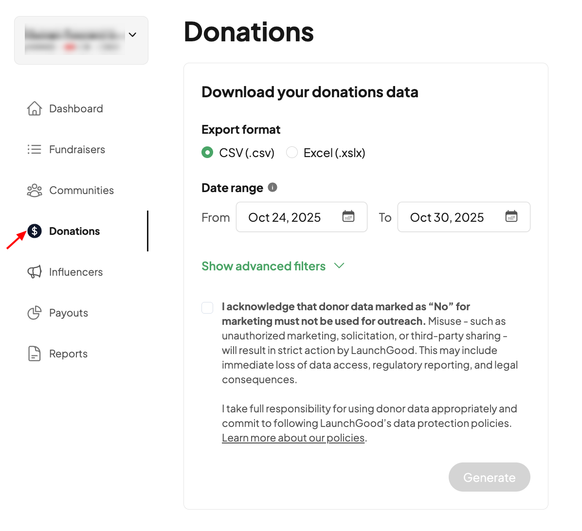 - Need access to older data? Reach out to our support team at support@launchgood.com.